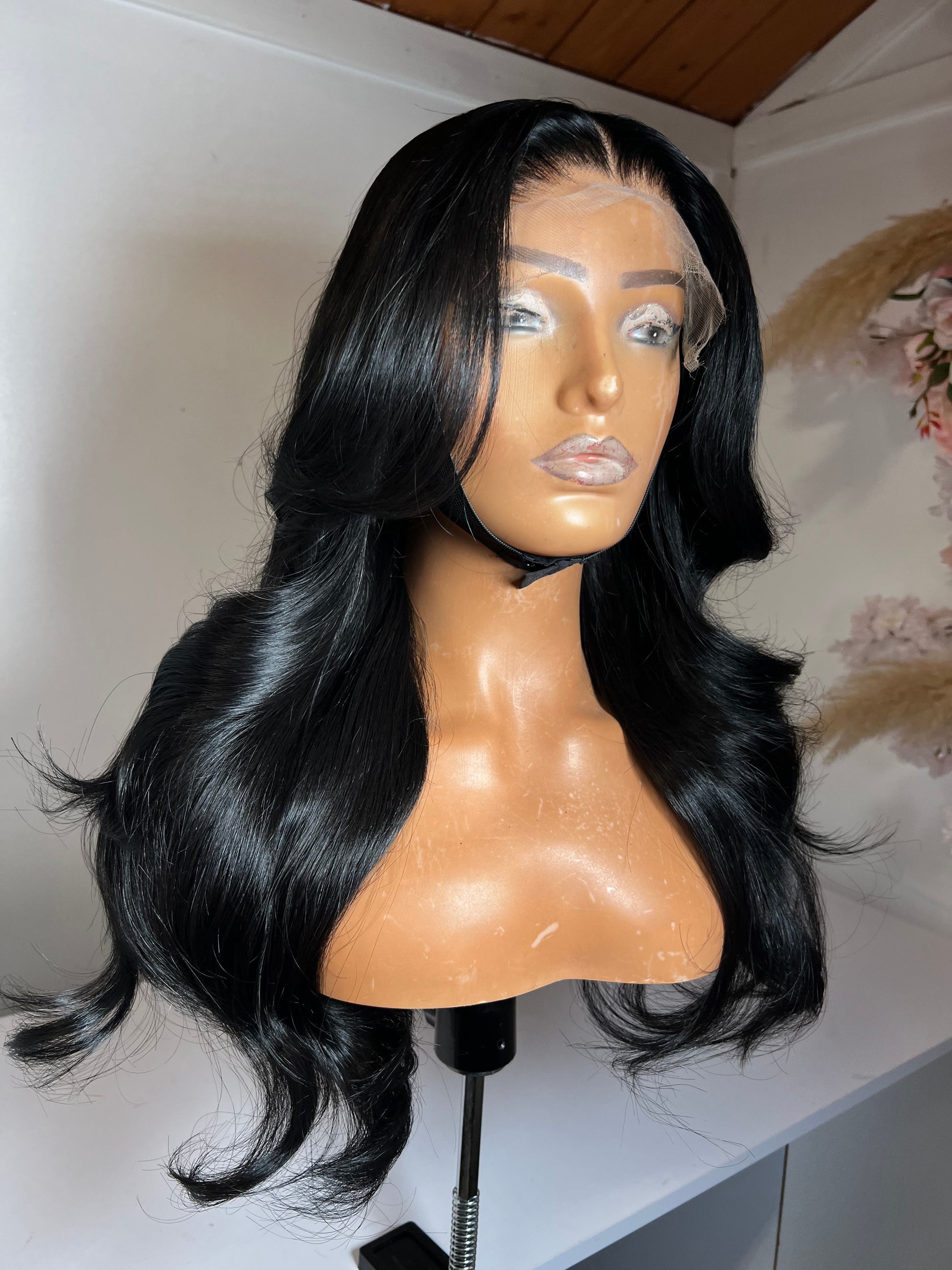 Our Noir wig is carefully handcrafted with our raw bundles, attached to a 6x6 lace closure. This jet black wig will have you covered with freestyle parting, realistic edges , allowing for a natural looking hairline.